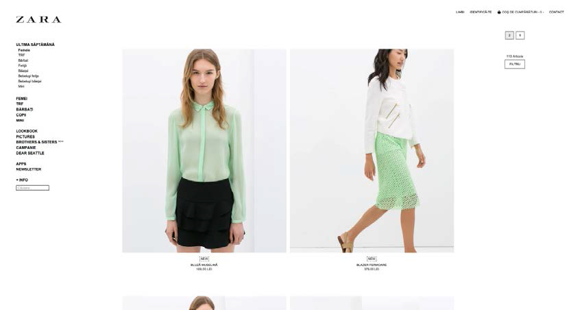 - Toate produsele sunt oferite online la acelaşi preţ ca în magazinele fizice Zara